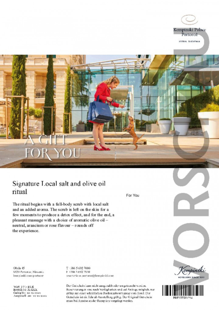 Das Ritual beginnt mit einem Ganzkörperpeeling mit lokalem Salz und hinzugefügtem Aroma. Das Peeling wird einige Zeit auf der Haut ruhen gelassen um einen Detox-Effekt zu erzielen. Zum Schluss rundet eine angeheme Massage mit wahlweise aromatischem Olivenöl - neutral, Aranium- oder Rosenduft- das Erlebnis ab.